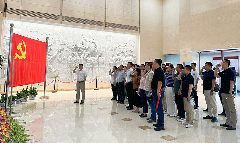 在紀念館內(nèi),公司黨委書記孫亞龍領(lǐng)誓,全體黨員在黨旗的見證下,重溫了對黨忠誠的錚錚誓言。