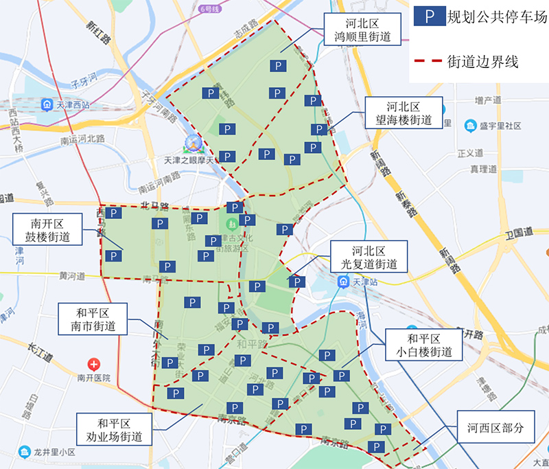 天津市中心城區(qū)核心區(qū)綠色交通改善工程及規(guī)劃停車(chē)場(chǎng)點(diǎn)位圖