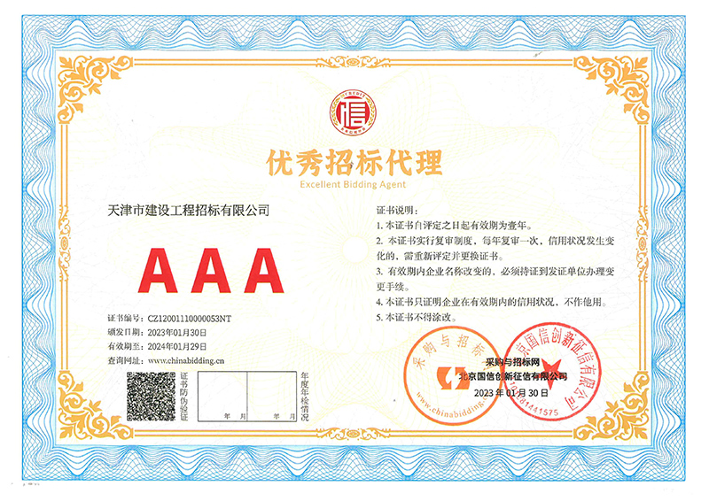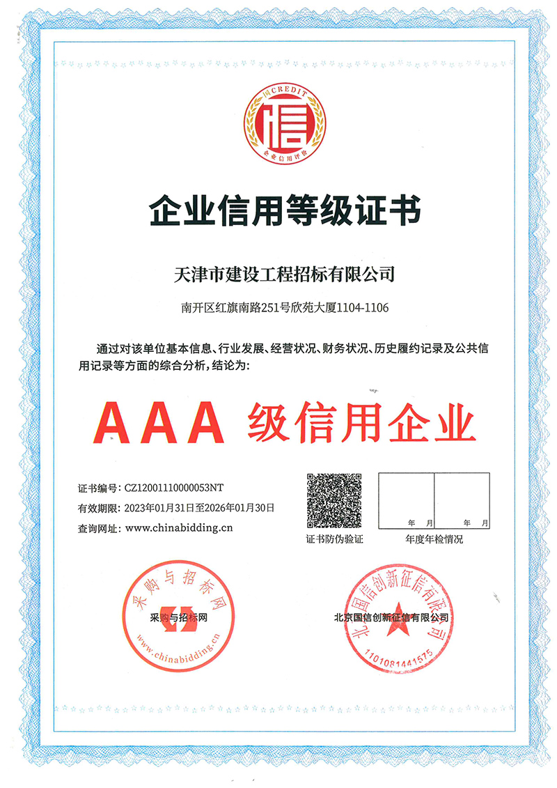 近日,從天咨公司下屬招標(biāo)公司傳來喜訊,招標(biāo)公司在采購與招標(biāo)網(wǎng)以及北京國信創(chuàng)新征信有限公司聯(lián)合組織的企業(yè)信用等級等有關(guān)評選中,獲評3A級信用企業(yè)和3A級優(yōu)秀招標(biāo)代理企業(yè)。