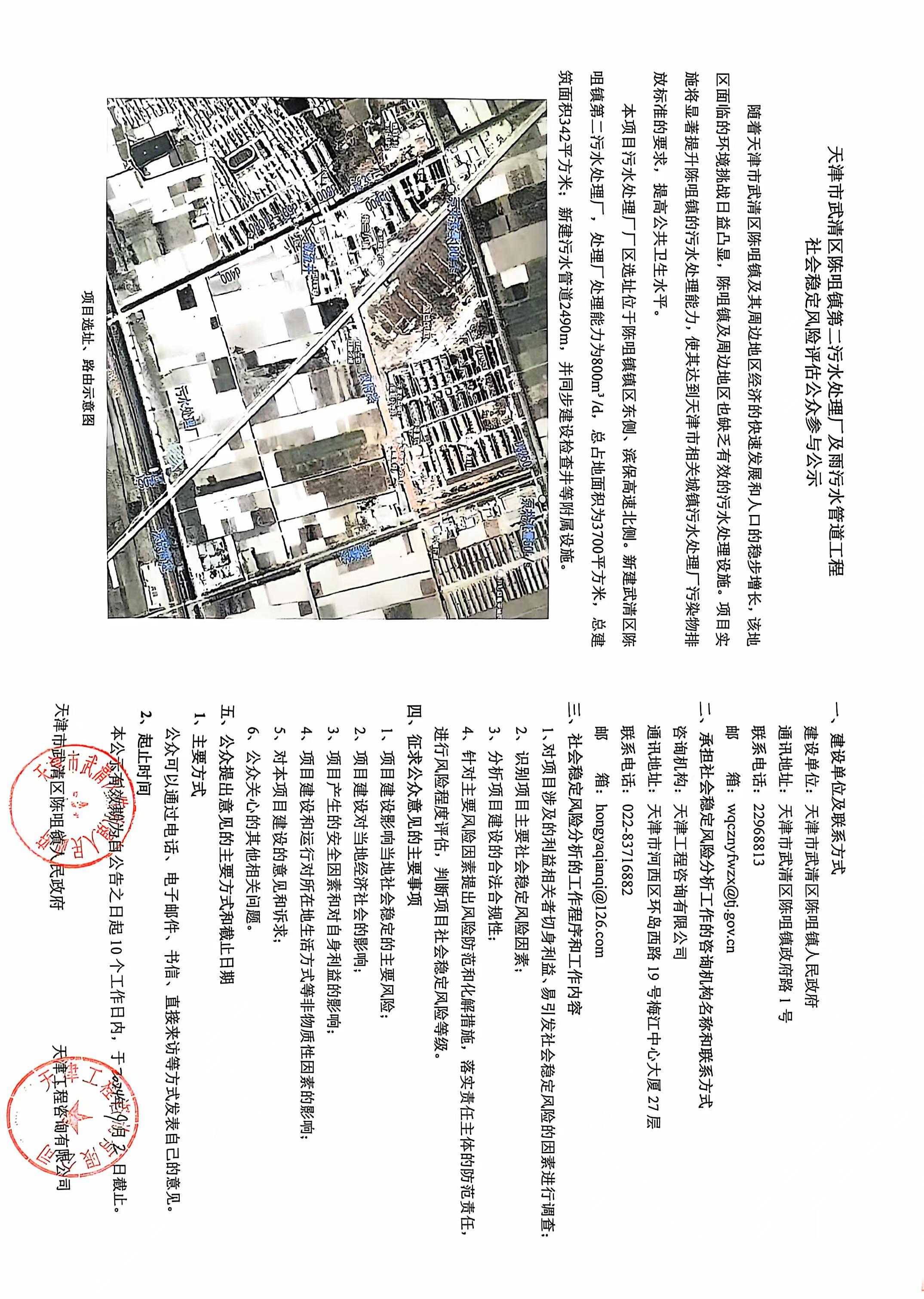 關(guān)于天津市武清區(qū)陳咀鎮(zhèn)第二污水處理廠及雨污水管道工程社會(huì)穩(wěn)定風(fēng)險(xiǎn)評(píng)估公眾參與的公示