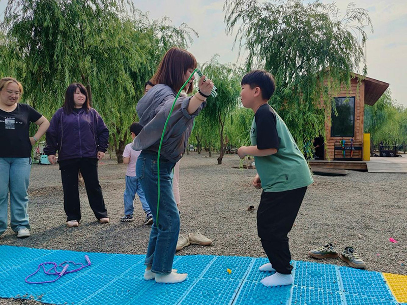 最后的指壓板大戰(zhàn)搖身變?yōu)橐粓觥巴觋J關(guān)大挑戰(zhàn)”。大家赤足踏上指壓板,挑戰(zhàn)跳繩、跳格子等經(jīng)典童年游戲任務(wù)。腳底雖傳來陣陣酸爽刺激,臉上卻始終綻放著燦爛笑容,咬牙堅持。團隊成員們在一旁奮力吶喊助威,互相鼓舞打氣,齊心協(xié)力共闖難關(guān),在歡笑與互助中凝聚起強大的團隊力量,將活動氛圍推向頂點。