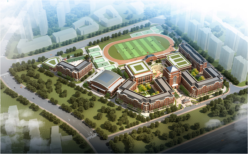 工程總建筑面積8.6萬(wàn)平米,其中地上建筑包含教學(xué)樓、綜合樓、宿舍、食堂、會(huì)議中心、體育中心、看臺(tái)、國(guó)際部教學(xué)樓及食堂共計(jì)7.4萬(wàn)平米;地下車庫(kù)及設(shè)備用房建筑面積1.2萬(wàn)平米。